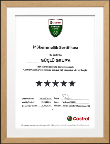 TÜV Rheinland, Castrol ile ortak belirlenen prosedürler doğrultusunda servisimizde denetimler gerçekleştirerek sertifikalandırmıştır.